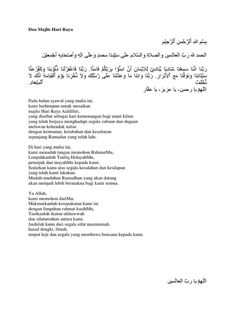 Bacaan Doa Majlis Rasmi Dan Tidak Rasmi Bahasa Melayu Arab A. Hari Gawai Dayak merupakan konsep. Majlis sambutan hari raya aidilfitri ini kita mulakan dengan munajat doa memohon restu dari yang maha esa.